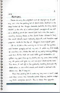 blue lines of his spiral note book. The drawings and text are flawless, yet they