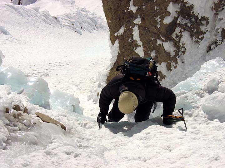 To climb the North face requires rope, pro (protection) including ice screws,
