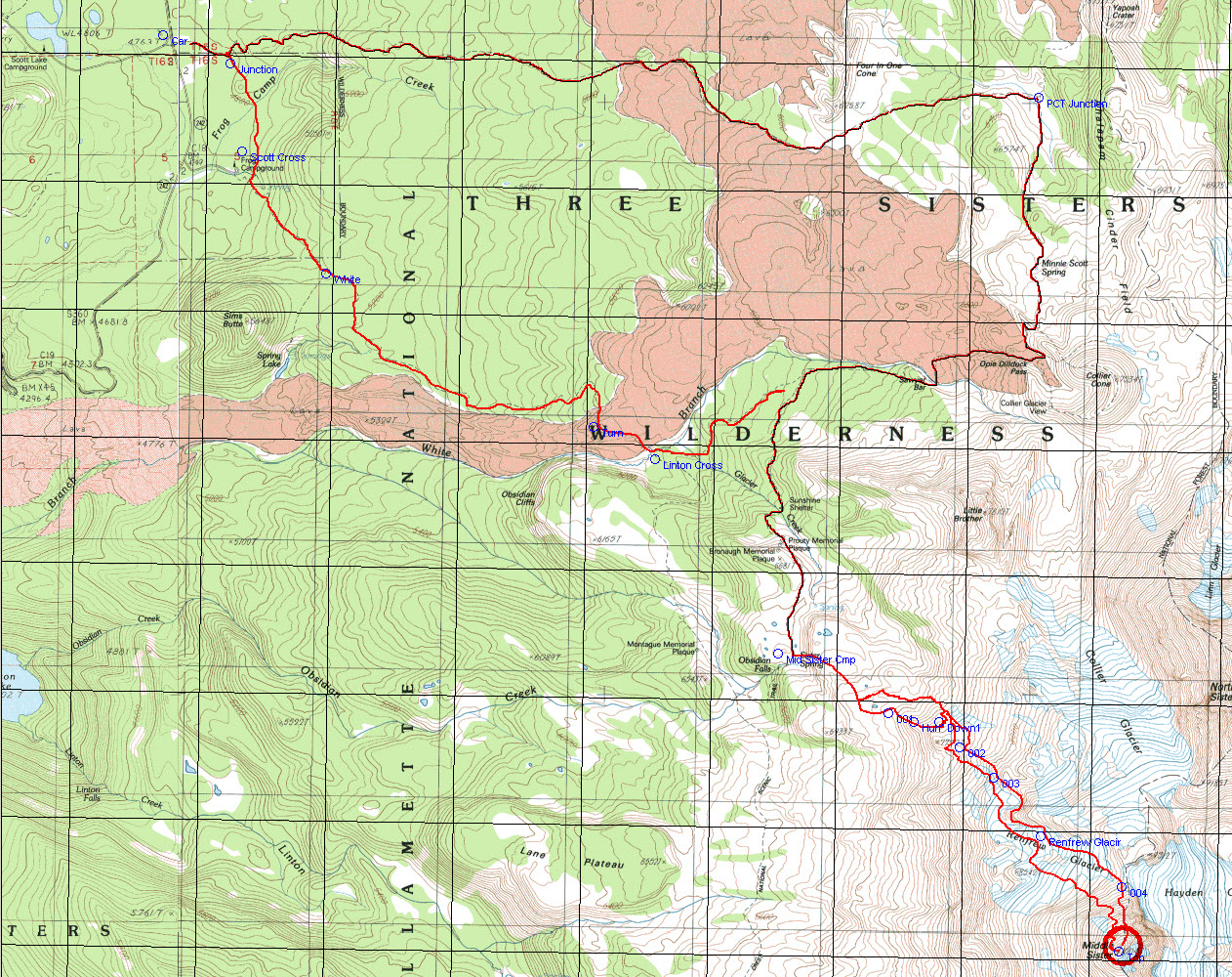 As it was, I hiked in from Scott Lake to the PCT, then south to Sister Springs.
